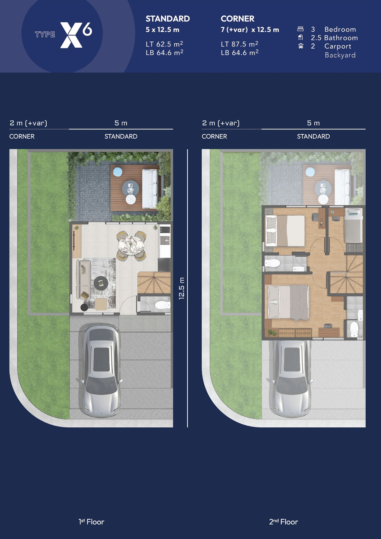 RPRumah modern 3 lantai yang dirancang untuk gaya hidup keluarga masa kini. Dengan luas tanah 62,5 m² (5 X 12,5m) dan luas bangunan 87,8 m².