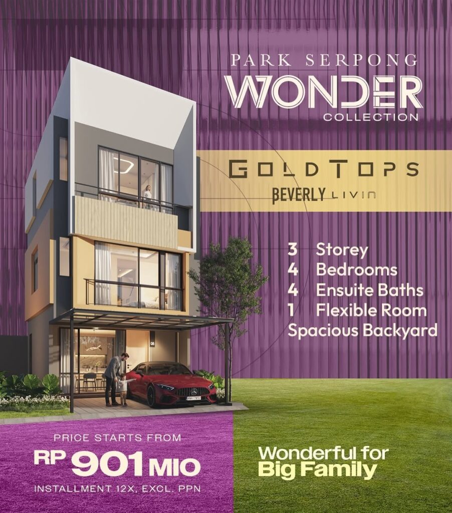 Hunian premium 3 lantai yang ideal untuk keluarga besar. Dilengkapi 4 kamar tidur, 4 kamar mandi ensuite, 1 ruang fleksibel, serta backyard luas yang menunjang kenyamanan dan aktivitas keluarga. Perpaduan desain modern, ruang lega, dan fungsionalitas maksimal dalam kawasan eksklusif. Harga mulai dari Rp901 juta.