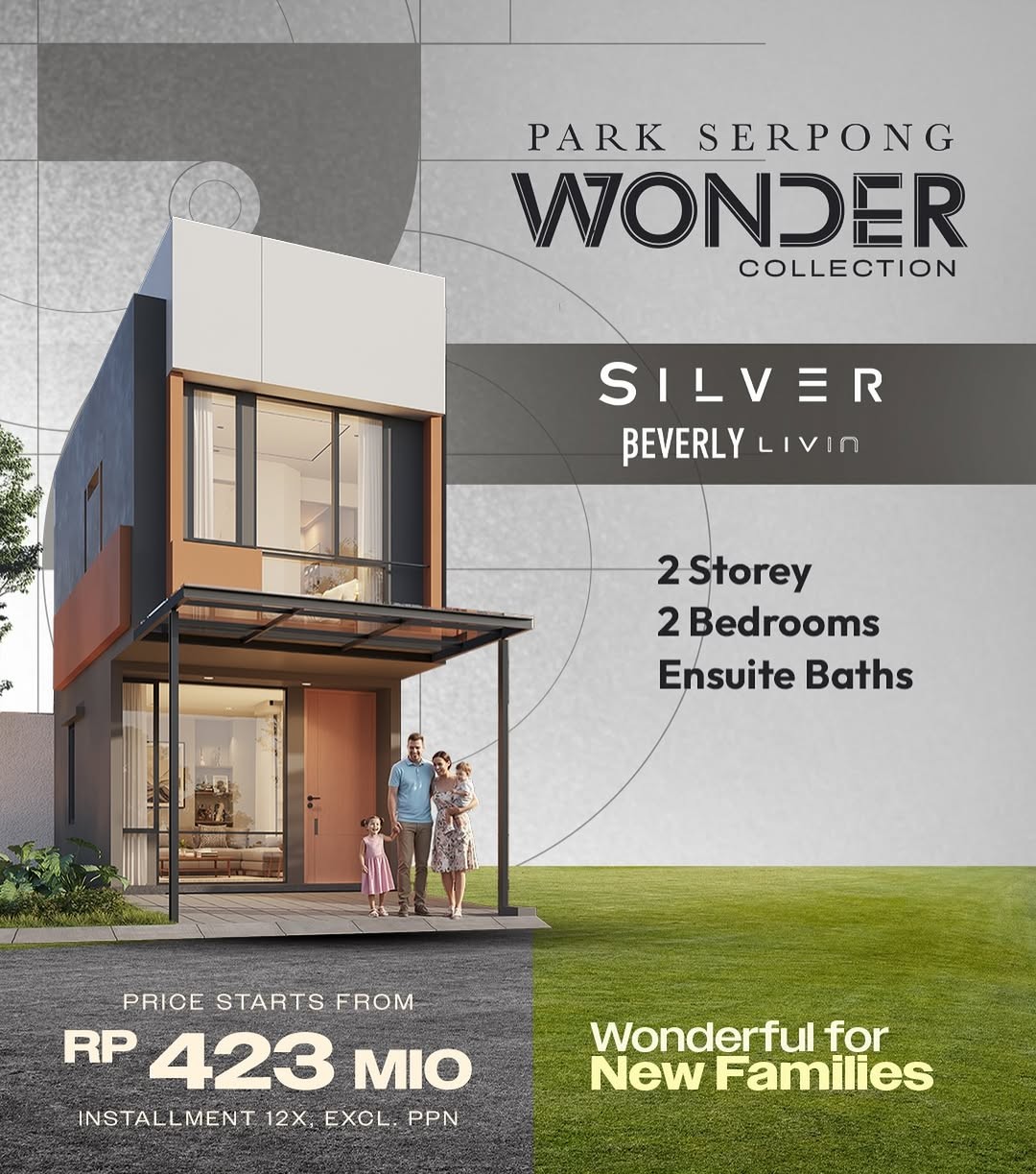 Hunian modern 2 lantai dengan 2 kamar tidur dan ensuite bathroom di setiap kamar, dirancang nyaman untuk keluarga baru. Tampilan elegan dengan tata ruang fungsional, ideal untuk tumbuh bersama keluarga. Harga mulai dari Rp423 jutaan dengan cicilan hingga 12x (excl. PPN).